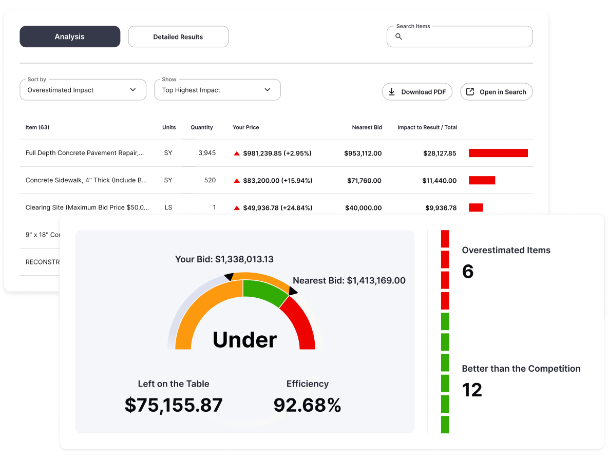 Want to know how much you left on the table in your last win? Or how close you came to winning that job you missed? We’ve already crunched the numbers—highlighting patterns, pricing gaps, and strategic opportunities to help you sharpen your edge.