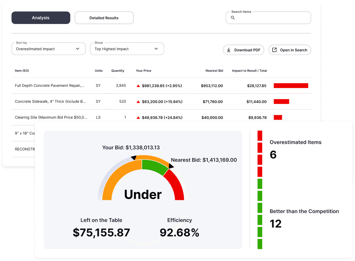 See how your numbers stack up—line by line—against winning and losing bids. Uncover patterns, pricing gaps, and opportunities to sharpen your estimating strategy with AI-guided insights.