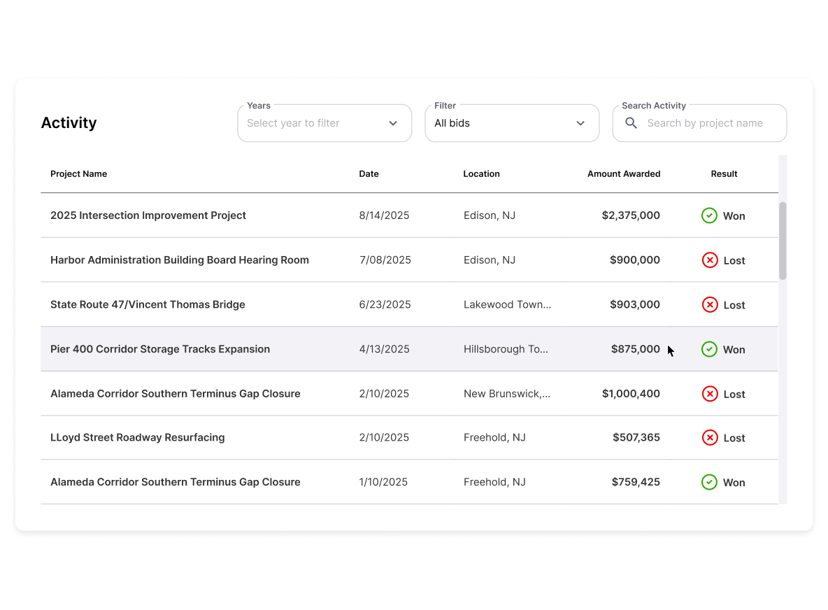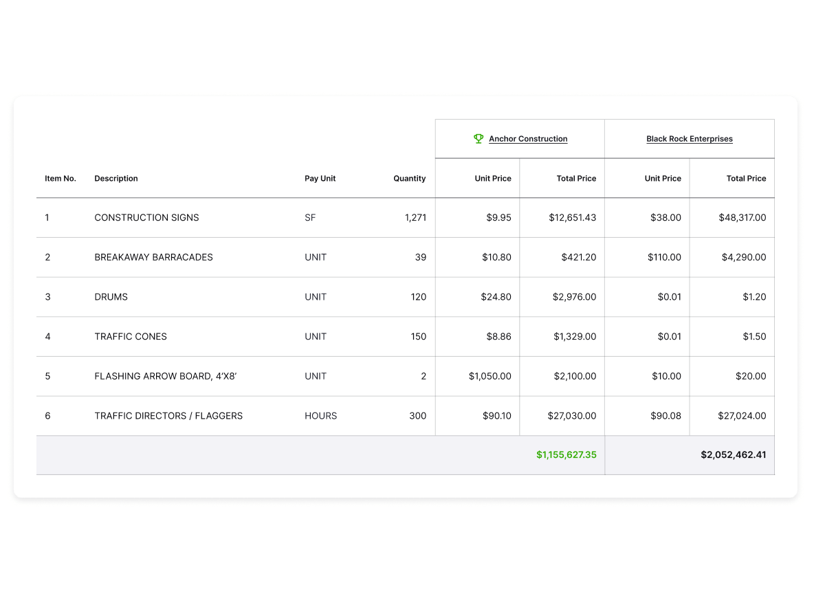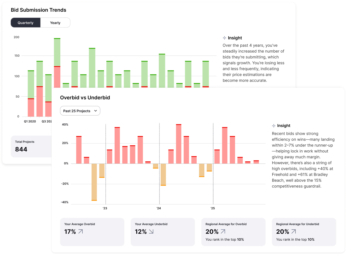 Track performance across bids to spot patterns behind the jobs you won—and the ones that got away. Learn what worked, what didn’t, and refine your strategy with every estimate.